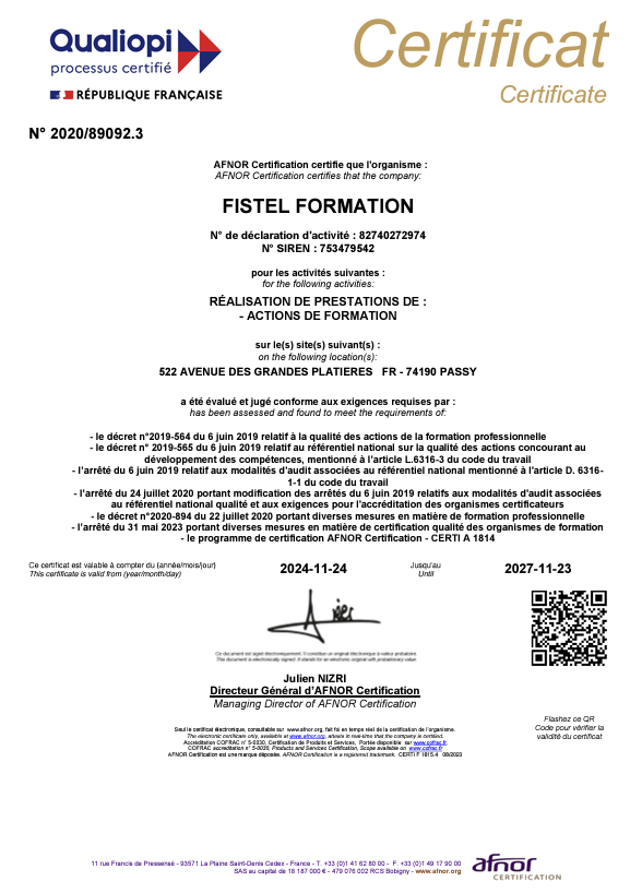 Fistel Formation, organisme de formation professionnelle, est le fruit de plusieurs années de travail, de recherche, de développement dans différents domaines professionnels.